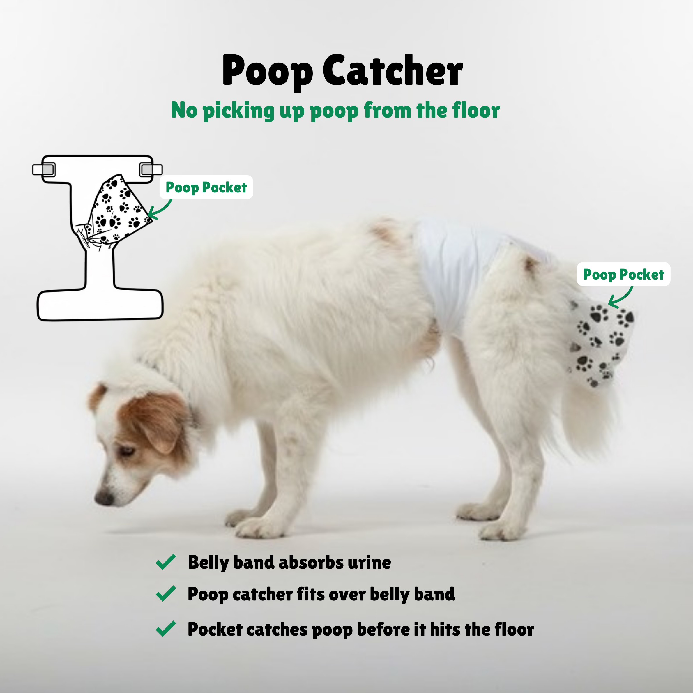 After dozens of prototypes and real-world testing with our senior dog, we developed a design that catches waste before it reaches the floor.